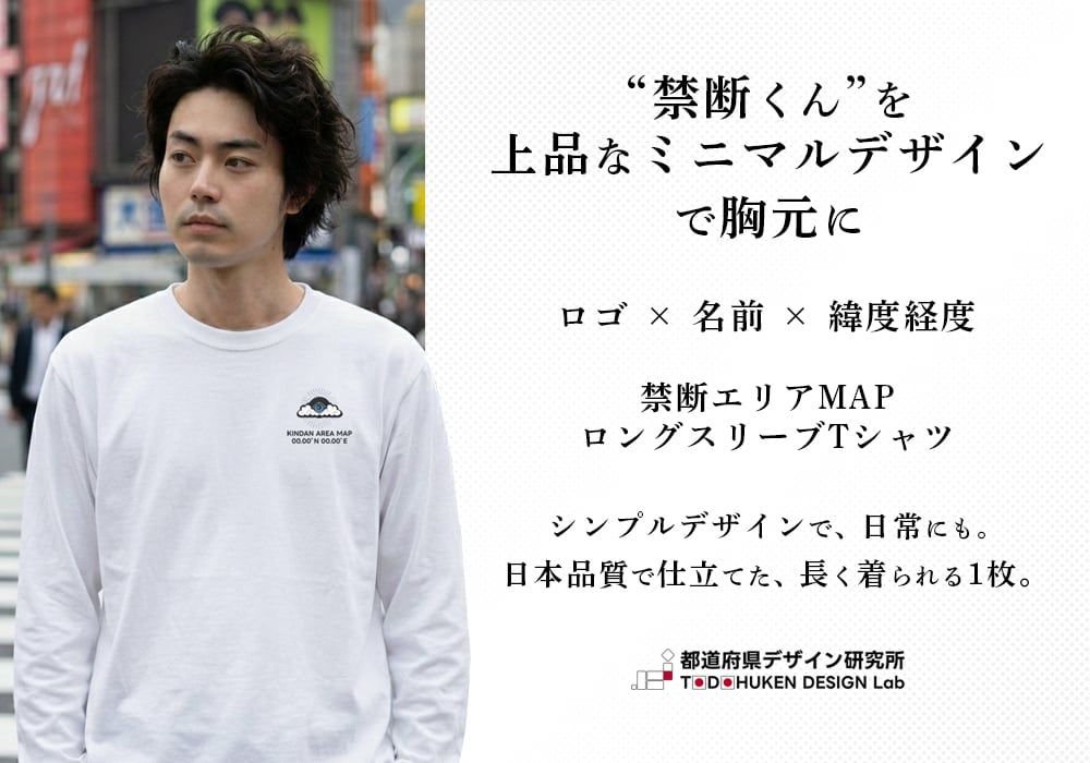 《神奈川》 緯度経度ミニマルロングスリーブTシャツ|地図×地名×ワンポイントデザイン