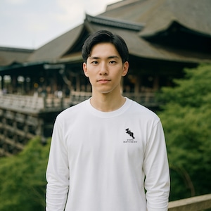 《京都》 緯度経度ミニマルロングスリーブTシャツ|地図×地名×ワンポイントデザイン